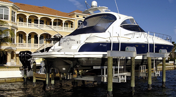 Boat motor lifting device and inner boom roll-up device equipped with plastic plain bearings.